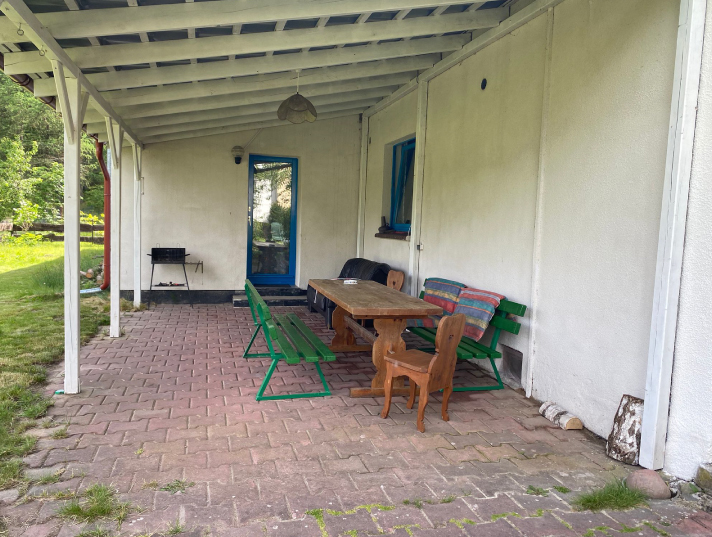 Kaszubska chata ma fajny, zadaszony taras, który już niejedno widział i pamięta. Zapewne i Wy spędzicie tam wspaniałe śniadania i kolacje.
