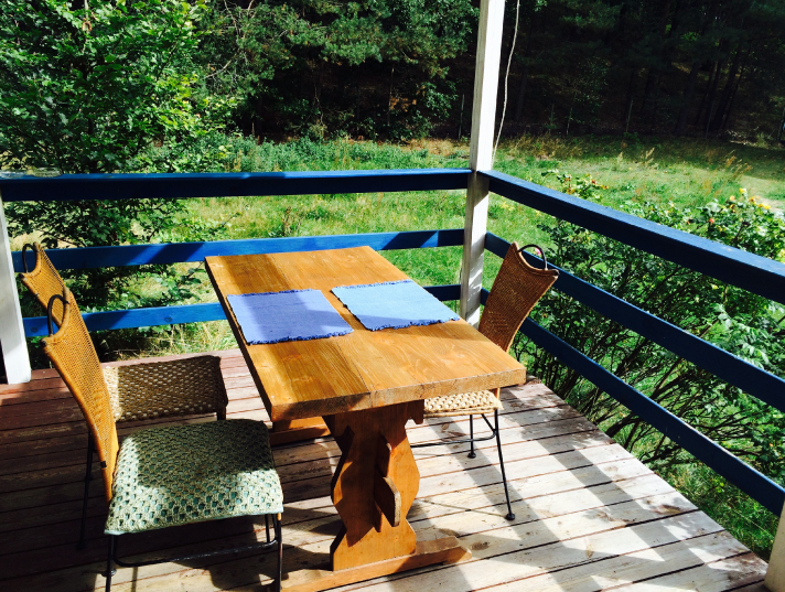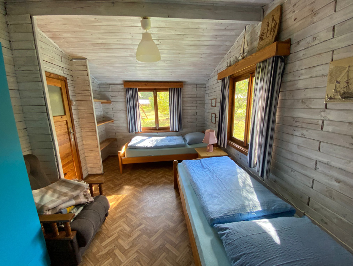 Domek znajduje się na skraju ośrodka, pod lasem, najbliżej jeziora Rzuno.