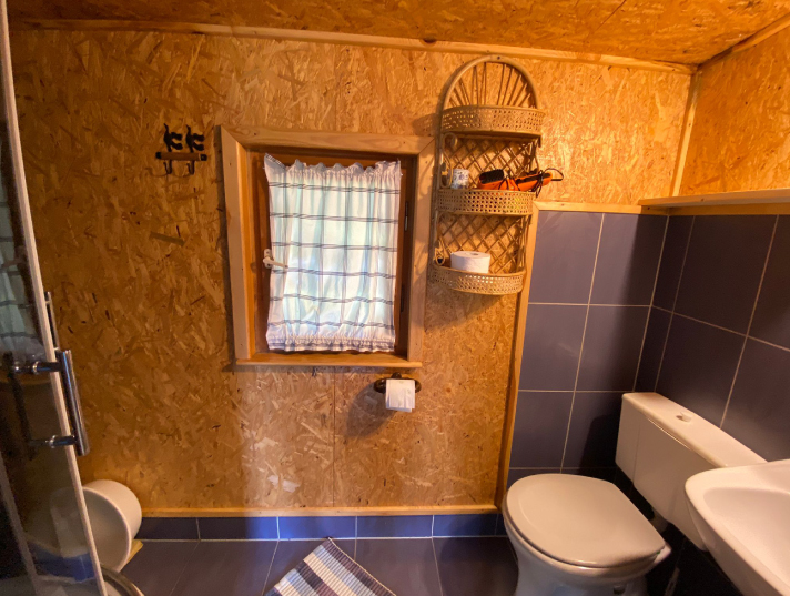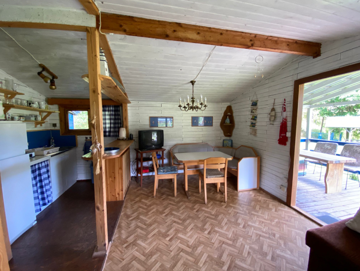 – jadalnię z aneksem kuchennym i z narożnikiem (rogówką), na którym można wygodnie spać.